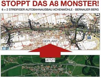 STOPPT DAS A8 MONSTER! Keine Zerstörung des Chiemgaus!Der Ausbau der A8 und die Planung widerspricht dem Pariser Klimaschutzabkommen, der Klimaschutz-Offensive der Bayerischen Staatsregierung und dem Artenschutz: - 10 betroffene Naturschutzgebiete und Wasserschutzgebiete - Massiver Flächenfraß Zusammen mit dem Bau des Brenner Nordzulauf bedeutet dies den Verkehrskollaps in Oberbayern. Dies ist unsere Heimat und unsere Zukunft und hierfür stehen wir gemeinsam und sagen: NICHT MIT UNS Wir fordern: Lärmschutz ja, Ausbau nein! Laut Weltklimarat (IPCC) haben wir nur noch 10 Jahre Zeit, um unsere Emissionen bedeutend zu reduzieren, um ein Überleben auf unserem Planeten Erde zu gewährleisten: Größere Autobahnen sind dabei genau das Gegenteil von dem, was wir brauchen. Wir benötigen das Geld, um unsere Wirtschaft und den Verkehr klimaneutral neu zu strukturieren. Dieses Vorhaben widerspricht dem unterschriebene Pariser Klimaschutzabkommen, dem Artenschutz und der bayerischen Klimaschutzoffensive! Wirtschafts-Gründe: o Langjährige Bautätigkeit (über 10 Jahre) o Extrem teures Bauprojekt: Minimum 1.2 Milliarden Euro ohne vorherige Bodenbeschaffenheitsprüfung durch Moorgebiete o Mammutprojekt in Oberbayern zusammen mit Brenner Nordzulauf o Reduzierung der Attraktion als Urlaubsgebiet: Wer will Urlaub in einem Gebiet mit Dauerbaustelle und Dauerstau machen? o Dörfer und Straßen werden durch zusätzliche Nutzung und A8-Bauaktivitäten maßgeblich beeinträchtigt Verkehrs-Gründe: o 2 Verkehrsachsen - Salzburg und Innsbruck - werden maximal durch Ausbauarbeiten belastet o Mehr Stau, mehr Verkehrsprobleme und noch mehr Abgase während der langen Bauphase o Fahrten nach München und Salzburg auf der Autobahn sind aufgrund von Dauerstaus kaum mehr möglich (verminderte Mobilität) Gesundheits- und Umweltschutz-Gründe: o Luftverschmutzung durch Dauerstau in Luftkurorten wegen Ausweichverkehr von Großbaustellen o Gesundheitsschäden durch Lärm und Luftverschmutzung o Lange Baustellenphase mit Lärm, Umwegs-Verkehr, Baufahrzeugen und Materiallagerung o Beschneidung von Erholungsgebieten Umwelt-Gründe: o Enormer Flächenfraß (artenreiche Naßwiesen, Eichen- und Buchenwälder, Feuchtgebiete, Laub-, Misch- und Nadelwälder, naturnahe Fliesgewässer und vieles mehr werden zerstört) o Verstädterung und Asphaltierung der Landschaft, was zur lokalen Temperaturerhöhung führt o Völlige Veränderung und Zerstörung des Landschaftsbildes des Voralpenlandes o Gefährdung von 10 wertvollen Naturschutzgebieten, u.a. Bärnsee, Chiemsee Brutgebiete, Vogelparadies Tiroler Ache, Bernauer Filz o Bedrohung von Wasserschutzgebieten o Verminderung der Biodiversität o Zerstörung von Feuchtgebieten als C02 Speicher4.580 von 5.000 UnterschriftenGestartet von Bürger-Initiative gegen A8