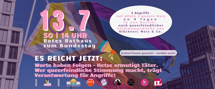 Protestzug vom Roten Rathaus zum Bundestag - Gegen die queere Hetze - Für Queerbeauftrage in allen Bezirken!