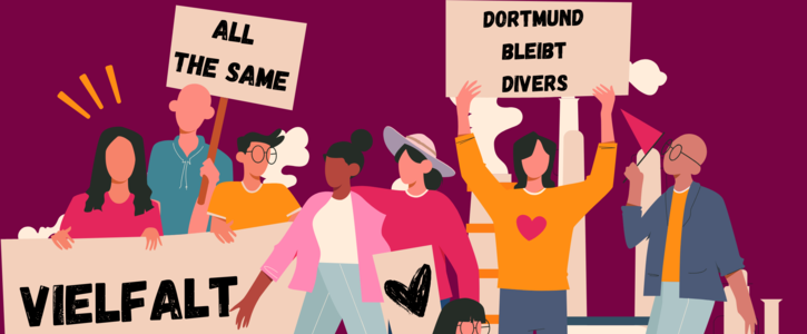 Wir leben in einer Einwanderungsgesellschaft und haben eine lange Migrationsgeschichte. Wir repräsentieren eine offene und vielfältige Gesellschaft. Die Dortmunder Zivilgesellschaft ist lebendig und engagiert. Durch diverse Aktionen verteidigt sie die Einwanderungsgesellschaft und zeigt eine eindeutige Positionierung: Dortmund ist divers! Dortmund bleibt divers!