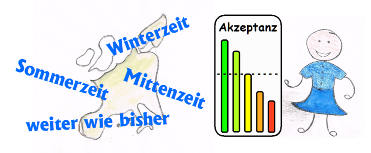 * Sie bietet neben der Frage "Sommer- oder Winterzeit?" zusätzlich die Wahl, für die so genannte "Mittenzeit" zu stimmen. Wobei Mittenzeit den rechnerischen Mittelwert zwischen Sommer- und Winterzeit meint. (2) (3)