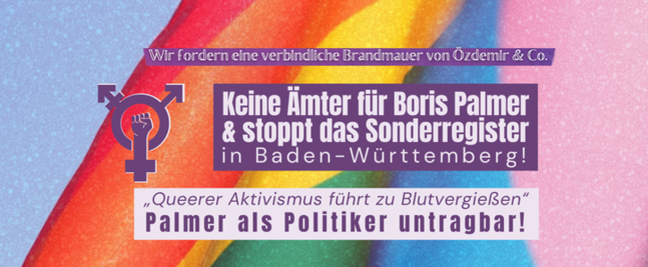 Wir sagen: Stoppt diesen frauen-, trans- und queerfeindlichen Frontalangriff auf unsere Grundrechte! Stoppt das Sonderregister in Baden-Württemberg! Und keine Ämter sowie Zusammenarbeit mit Palmer – weder als Minister noch als OB!