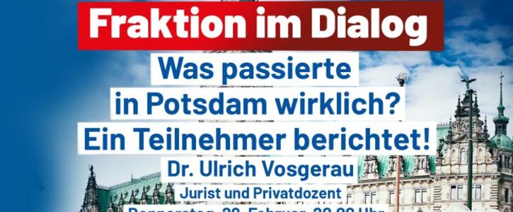 Guten Tag Carola Veit. Am Donnerstag, dem 29. Februar 2024 um 20:00 Uhr hat die 💩fD im Hamburger Rathaus zu einer Veranstaltung eingeladen. Sprechen soll auch Ulrich Vosgerau, Mitglied der CDU und der Werteunion, der aber auch seine Teilnahme an der Veranstaltung in Potsdam bestätigt hat, die ja Auslöser der Proteste in den letzten Wochen sind. Wir fordern Sie auf, diese Veranstaltung im Hamburger Rathaus zu untersagen und der 💩fD keine öffentliche Bühne für menschenverachtenden Rassismus zu bieten. Unterstützen Sie bitte den millionenfachen Protest der letzten Wochen gegen Diskriminierung, Rassismus und ein völlig veraltetes Frauenbild und schliessen Sie sich den Protesten an, statt der 💩fD eine öffentliche Bühne zu bieten.