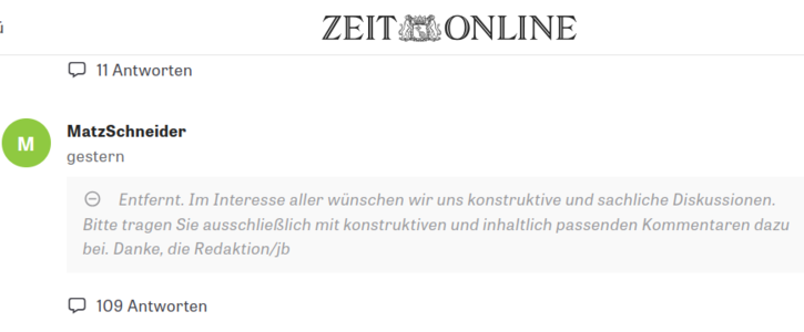 Viele Internetseite bieten die Funktion an, dass mit einem Klick ein Text oder ein Video publiziert werden kann. Wenn die Publikation dem Pressekodex widerspricht und die Spaltung der Gesellschaft fördert oder sogar Hass verbreitet, sollte diese so schnell wie möglich ausgeblendet werden, damit der Hass nicht seine Wirkung verbreiten kann. Es wäre deswegen fair, wenn es neben der "Ein-Klick-Publikation" auch eine Funktion gäbe, die Publikation mit einem Klick zu verbergen, bis geprüft ist, ob die Publikation laut Presserecht und Pressekodex angemessen ist.
