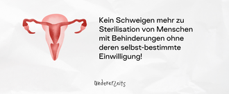 Kein Schweigen mehr zur Sterilisation von Menschen mit Behinderungen!Das inklusive Magazin andererseits hat 7 große Missstände aufgedeckt, die dazu führen, dass Menschen mit Behinderungen manchmal immer noch sterilisiert werden, ohne dass sie sich selbst-bestimmt dazu entschieden haben: 1. Sterilisationen passieren nicht mit echter Einwilligung der Betroffenen, sondern oft aufgrund von Druck aus dem Umfeld. 2. Es gibt zu wenige Infos in Einfacher oder Leichter Sprache, damit Betroffene sich selbstbestimmt für oder gegen eine Sterilisation entscheiden können. 3. Ärzt*innen kennen die Gesetze nicht gut genug, deswegen kommt es zu Sterilisationen, die nicht ohne Einwilligung der Betroffenen oder der Entscheidung eines Gerichts hätten stattfinden dürfen. 4. Menschen mit Behinderungen bekommen Verhütungsmittel mit schweren Nebenwirkungen, ohne gut darüber informiert zu werden. 5. Der Gedanke, dass Menschen mit Behinderungen keine Kinder bekommen sollten, kommt größtenteils aus der Nazi-Zeit, in der viel Gewalt gegen Menschen mit Behinderungen passiert ist. Später wurde kaum darüber gesprochen – bis heute gibt es hier zu wenig Aufarbeitung. 6. Es gibt zu wenige Angebote und Unterstützung für Menschen mit Behinderungen, die selbstbestimmte Elternschaft möglich machen. 7. Es gibt kaum Daten zu Menschen mit Behinderungen allgemein, sowie zu Verhütung und sexueller Selbstbestimmung von Menschen mit Behinderungen im Speziellen. Wir appellieren an Bärbel Bas, Bundesministerin für Arbeit und Soziales (SPD), an Karin Prien, Bundesministerin für Bildung, Familie, Senioren, Frauen und Jugend (CDU) sowie Jürgen Dusel, den Beauftragten der Bundesregierung für die Belange von Menschen mit Behinderungen: Reagieren Sie umgehend auf diese Missstände. Wir fordern konkrete Maßnahmen, die die körperliche Selbstbestimmung von Menschen mit Behinderungen gewährleisten und damit die Einhaltung der von Deutschland unterzeichneten UN-Behindertenrechtskonvention sicherstellen.888 von 1.000 UnterschriftenGestartet von andererseits - für Inklusion im Journalismus