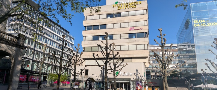 Errichtet 1970 vom Büro Kammerer + Belz und dem Architekten Max Bächer, steht das Haus im damals typischen Brutalismus-Stil exemplarisch für die Nachkriegsarchitektur und wurde für die Wittwer-Buchhandlung konzipiert. Bis heute befindet sich hier eine Buchhandlung (Thalia). Ein Abriss wäre ein schwerer Verlust: für die Baukultur, für die Identität der Stadt – und für das Klima. Denn er zerstört wertvolle graue Energie und setzt unnötig CO₂ frei.