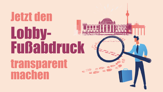Lobby-Fußabdruck: Politische Einflussnahme transparent machen!Danke an 13.994 Unterzeichner*innen! Wir haben es geschafft: Am 6. März 2024 wurde der Lobby-Fußabdruck endlich beschlossen. Bis zur tatsächlichen Transparenz ist es noch ein Stück. Wir bleiben dran – danke für Eure Unterstützung! ➡️ Lest jetzt die ganze Geschichte im Campact-Blog: https://blog.campact.de/2024/03/erfolg-mehr-transparenz-dank-lobby-fussabdruck/13.962 UnterschriftenGestartet von Transparency International Deutschland e.V.