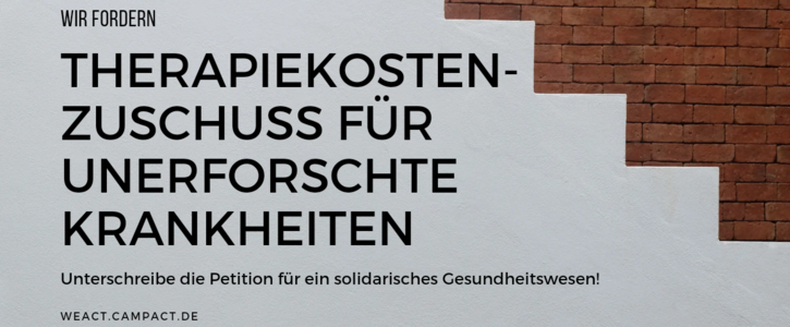 Wir fordern ein pauschales Budget, das Patient*innen von ihren Krankenkassen zur Bewältigung ihrer Krankheit zur Verfügung gestellt bekommen, solange es keine nachweislich wirksame Therapie dafür gibt.
