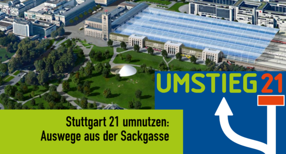 Jeder Cent mehr für den viel zu klein geplanten Tunnelbahnhof ohne Brandschutz und ohne Fluchtwege für Behinderte, ist gutes (Steuer-)Geld, das man dem schlechten hinterherwirft – erst recht, da es mit der Alternative "Umstieg 21"[2] einen überzeugenden Weg aus der Sackgasse Stuttgart 21 gibt: Die vorhandenen Baugruben werden sinnvoll genutzt, der Kopfbahnhof wird als Verkehrsknoten ausgebaut und modernisiert. Dadurch wird eine Verspätungsfalle für den bundesweiten Bahnverkehr vermieden. Gleichzeitig kostet der Umstieg Milliarden weniger, die so für wichtige und sinnvolle Projekte im ganzen Land verwendet werden können. Und sogar der Städtebau profitiert durch die zeitnahe Erschließung neuer Flächen.