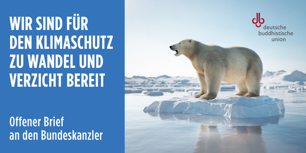 Diesen Brief schreiben wir als Teilnehmende, Delegierte, Rats- und Vorstandsmitglieder der jährlichen Mitgliederversammlung der Deutschen Buddhistischen Union, dem Dachverband buddhistischer Gemeinschaften und Einzelmitglieder in Deutschland –, und wir schreiben ihn aus großer Sorge um die Folgen des menschengemachten Klimawandels. Die seriöse Klimaforschung informiert uns seit Jahren darüber, was Natur und Menschheit erwartet, wenn wir uns als unfähig erweisen sollten, der menschenverursachten Erderhitzung wirksame Maßnahmen entgegenzustellen.